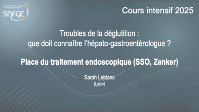 Cours intensif Troubles de la déglutition : que doit connaître l’hépato-gastroentérologue ? - Place du traitement endoscopique (SSO, Zenker)