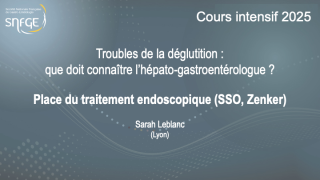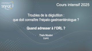 Cours intensif Troubles de la déglutition : que doit connaître l’hépato-gastroentérologue ? Session presentation(s) Troubles de la déglutition : que doit connaître l’hépato-gastroentérologue ? - Le bilan à réaliser par l’hépato-gastroentérologue Troubles de la déglutition : que doit connaître l’hépato-gastroentérologue ? - Quand adresser à l’ORL ? Troubles de la déglutition : que doit connaître l’hépato-gastroentérologue ? - Et si c’était un globus ou une impossibilité à roter ? Troubles de la déglutition : que doit connaître l’hépato-gastroentérologue ? - Place du traitement endoscopique (SSO, Zenker)
